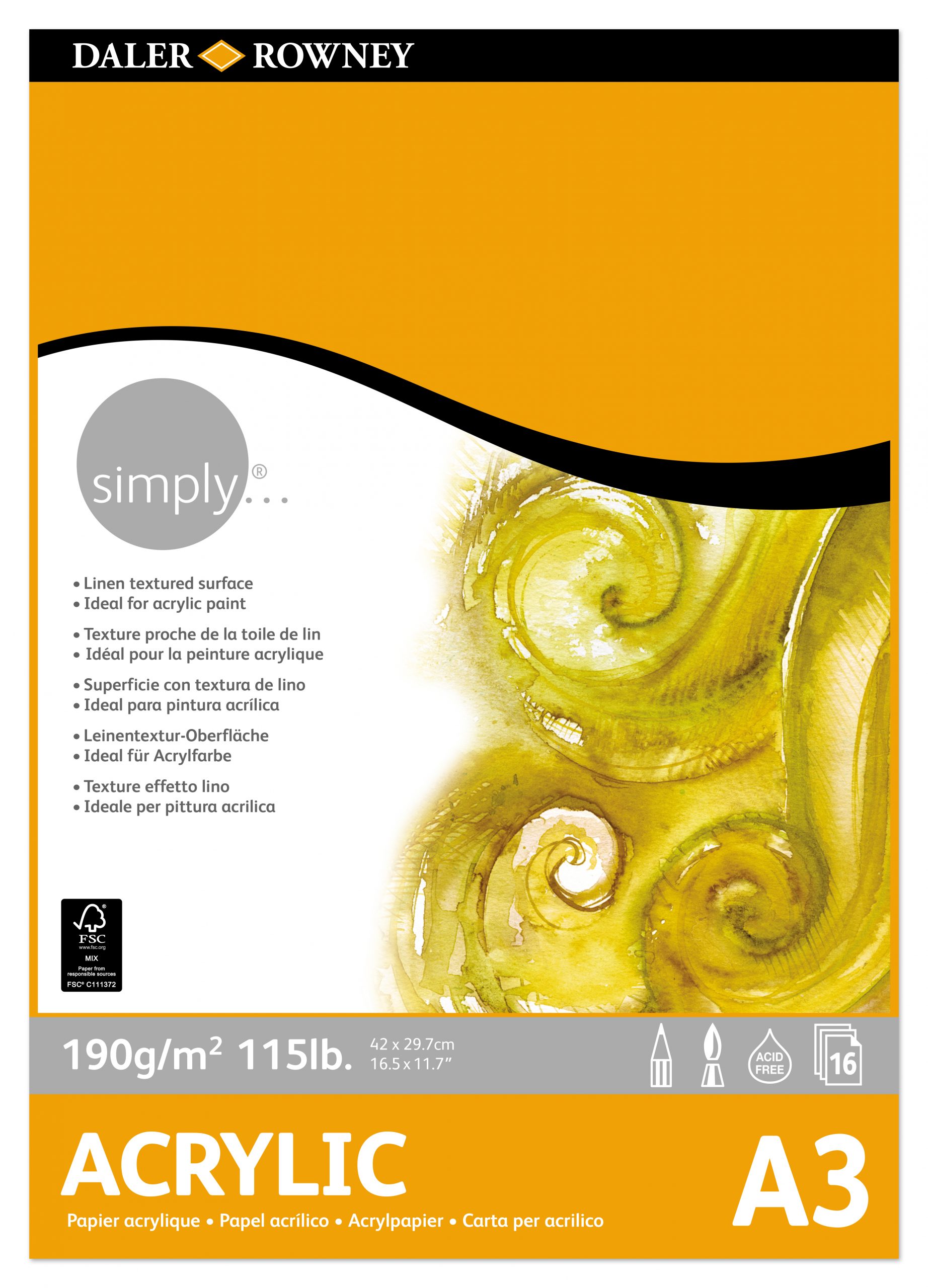Simply – Acrylic Pad – A3 – 190gsm – 16 Sheet